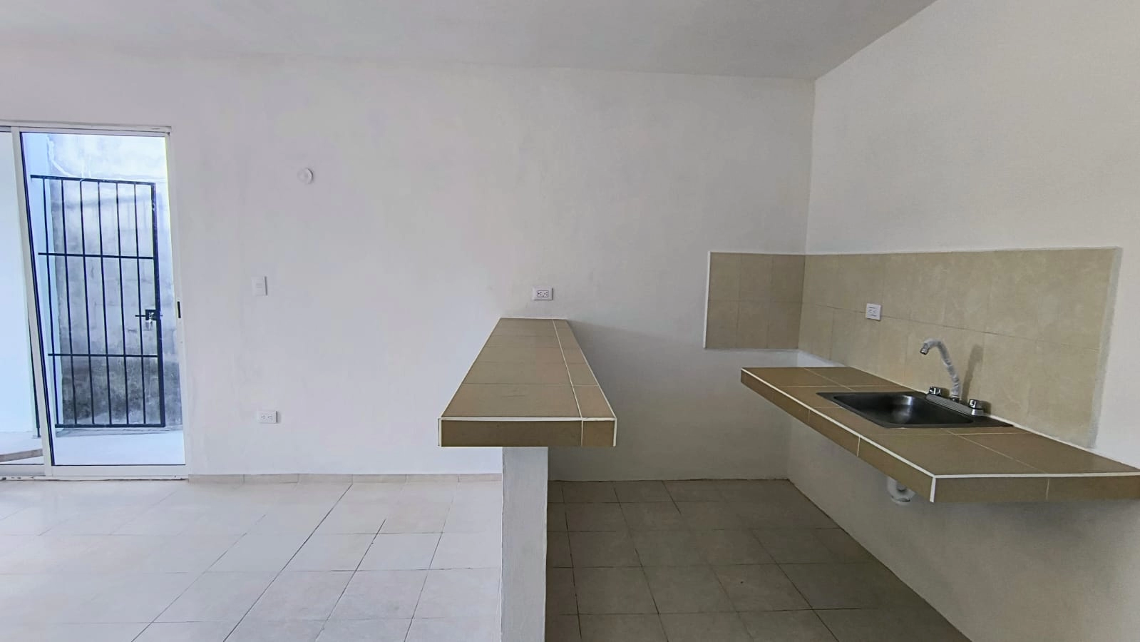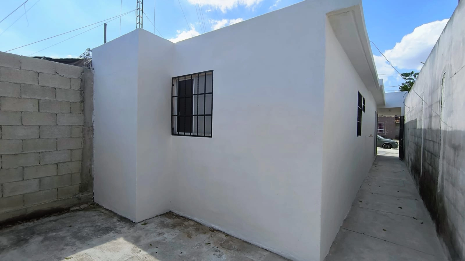 Casa de una habitación, sala comedor corridos, cocina con barra, baño con cancel, piso cerámico, protectores. Todo bardeado. Terreno de 5 x 20 con 50.4 metros cuadrados de construcción. Se ubica a dos cuadras de la glorieta principal.