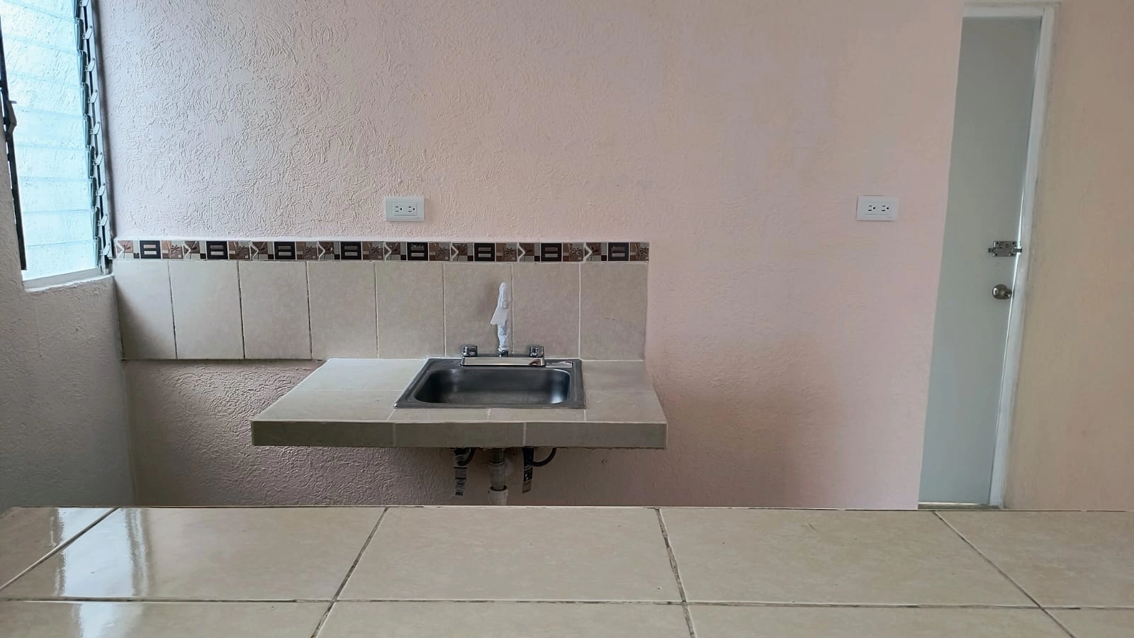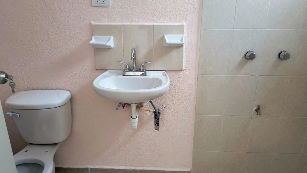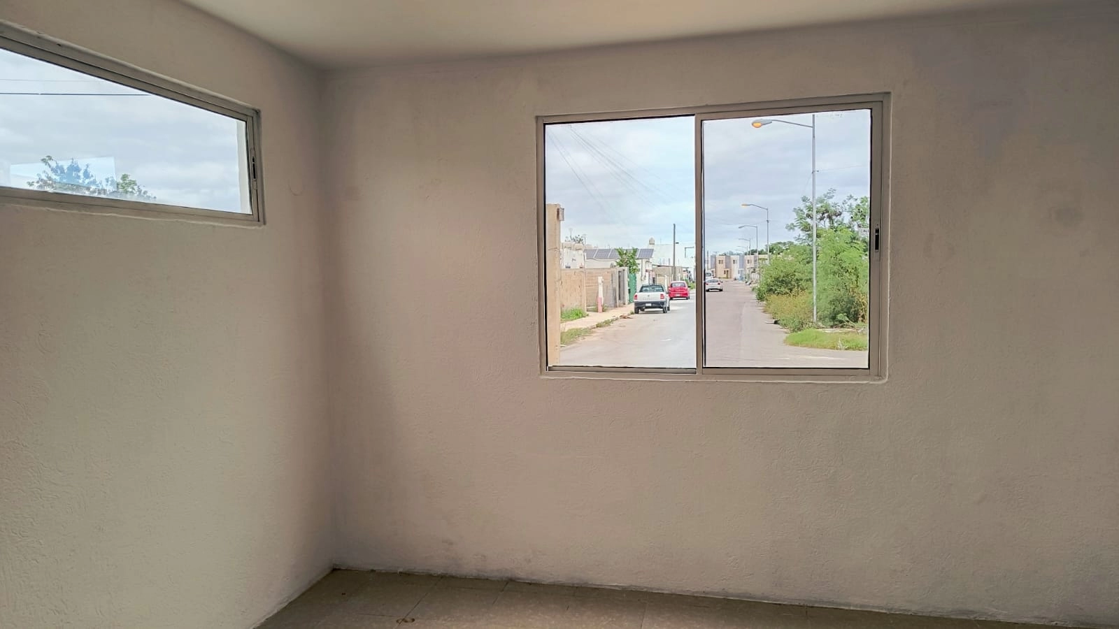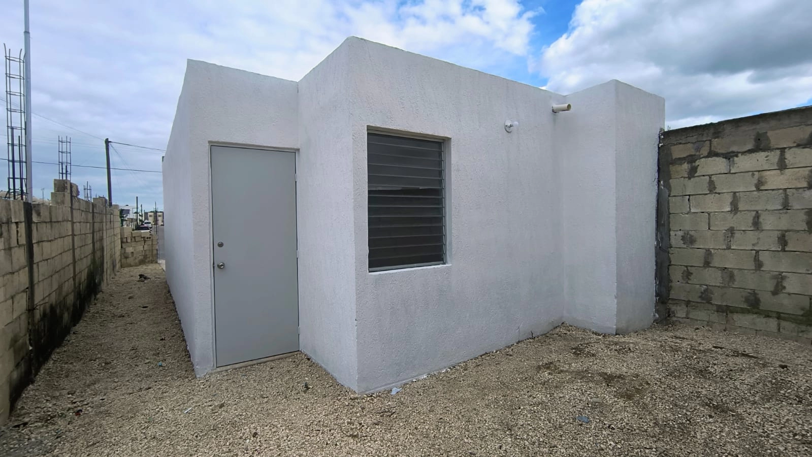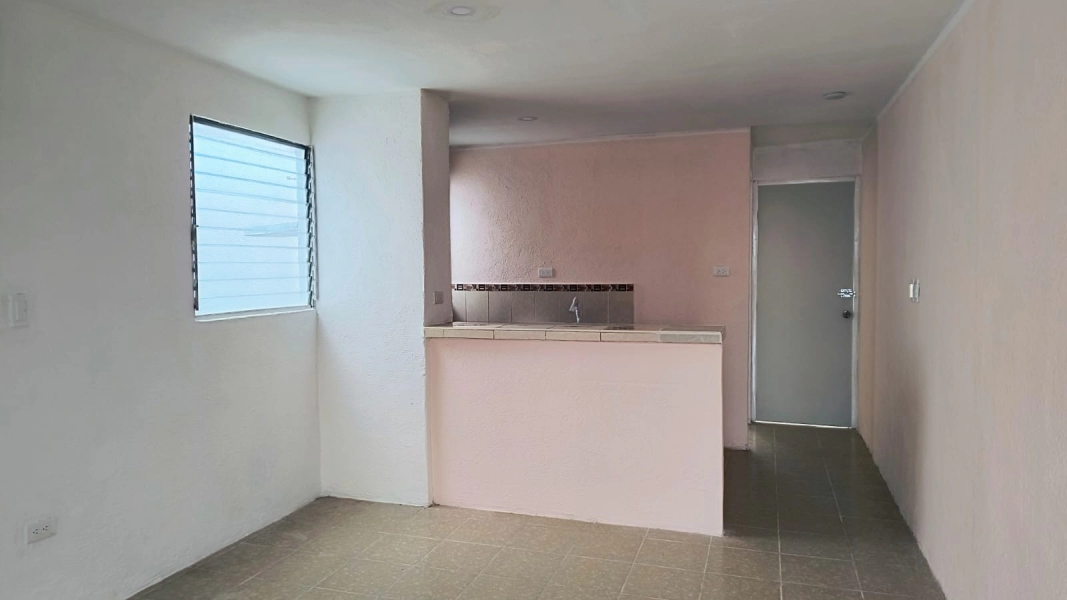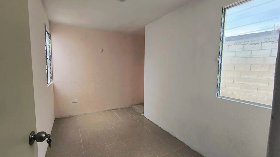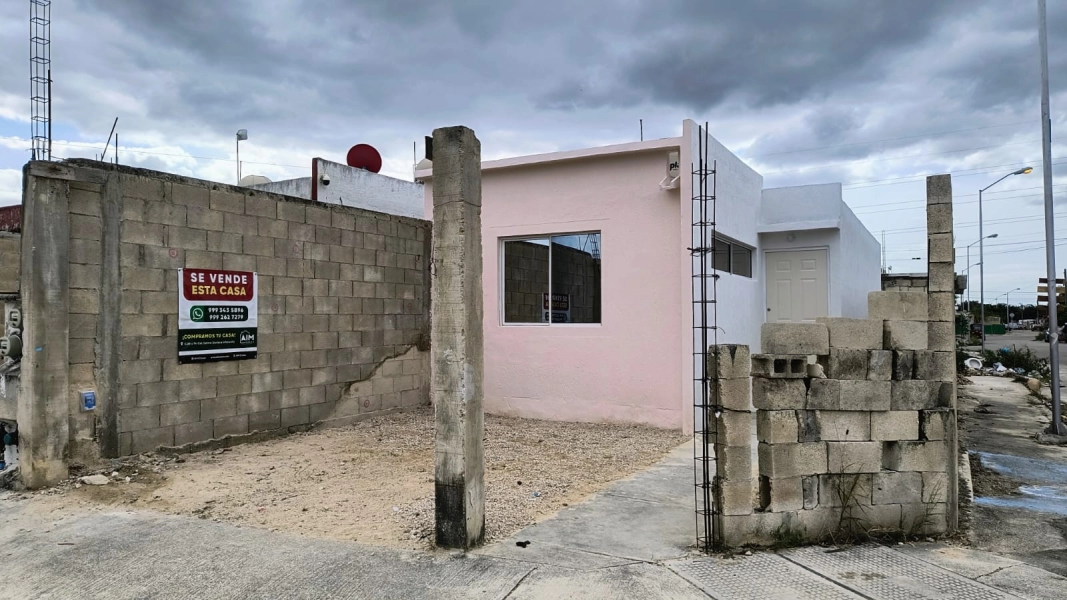 Casa en esquina de dos habitaciones, sala comedor corridos, cocina con barra, baño, cubo de luz, piso cerámico, bardas laterales y al fondo, terreno de 5.21 x 19.65 m. con 52.96 m2