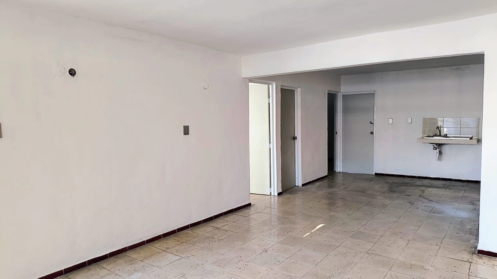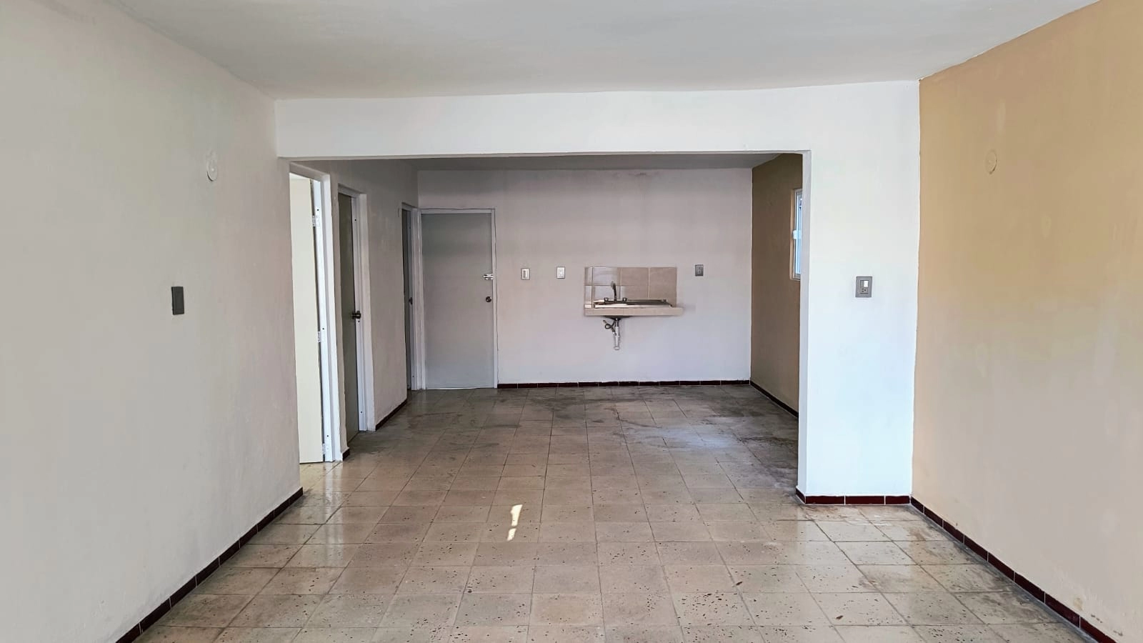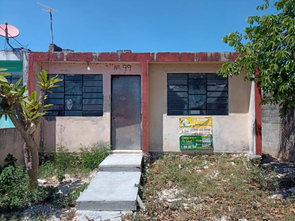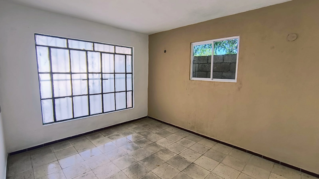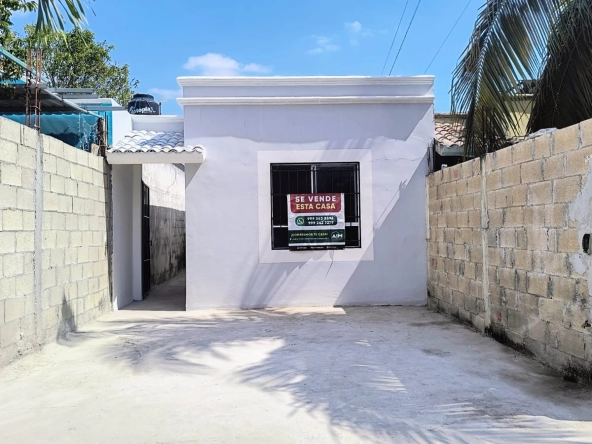 Casa de dos habitaciones, sala, cocina comedor, baño, piso de pasta. protectores. Esquina, terreno irregular de 10 x 27. Tiene 82.87 metros cuadrados de construcción. Se ubica a dos calles del campo de béisbol.
